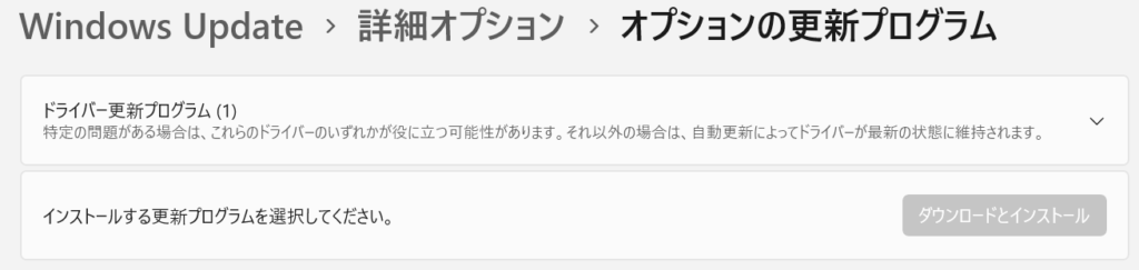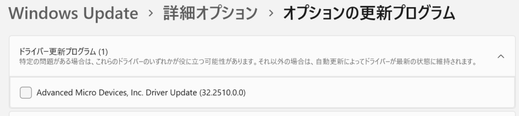 その中の追加オプションの段落の中に「オプションの更新プログラム」があります。